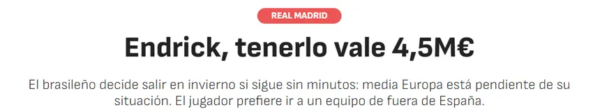 “Endrick, tê-lo vale € 4,5 milhões”, destaca o As. O valor mencionado corresponde ao custo estimado de um empréstimo por seis meses, considerando a amortização do investimento feito pelo Real Madrid e os salários do atleta.