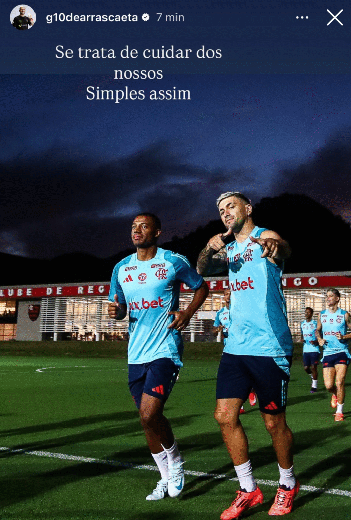 Enquanto isso, seu companheiro de equipe e compatriota, Arrascaeta, também se posicionou de forma indireta, divulgando uma imagem ao lado de De La Cruz. O gesto foi interpretado como demonstração de apoio ao colega.