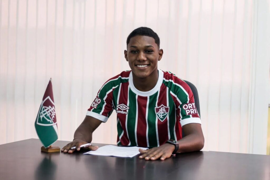 Em um momento em que o Fluminense movimenta os bastidores em busca de reforços para o elenco principal, o clube também mostra olhar atento para o futuro. Uma das maiores promessas da base, o lateral-esquerdo Richard Wendel, de apenas 16 anos, assinou seu primeiro contrato profissional com o Tricolor nesta quarta-feira (6), no Centro de Treinamento Vale das Laranjeiras, em Xerém.