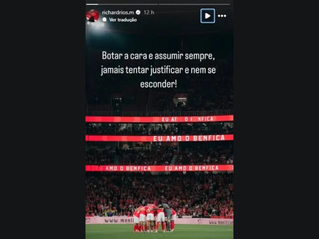 O meio-campista Richard Ríos se manifestou nesta segunda-feira (10) após uma falha que resultou no empate por 2 a 2 entre Benfica e Casa Pia, no Estádio da Luz, em partida válida pela 11ª rodada do Campeonato Português.