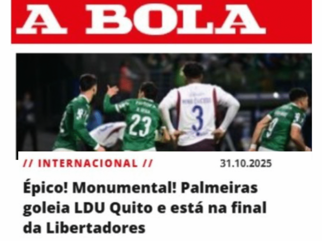 A classificação histórica do Palmeiras para a final da Libertadores repercutiu amplamente na imprensa de Portugal. A virada por 4 a 0 sobre a LDU, no Allianz Parque, após a derrota por 3 a 0 em Quito, colocou Abel Ferreira no centro das atenções.